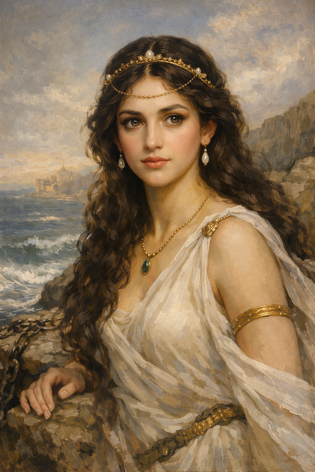 Su madre Casiopea presumió de ser más bella que las Nereidas. Poseidón envió al monstruo Ceto. Perseo la rescató mostrando la cabeza de Medusa al monstruo.