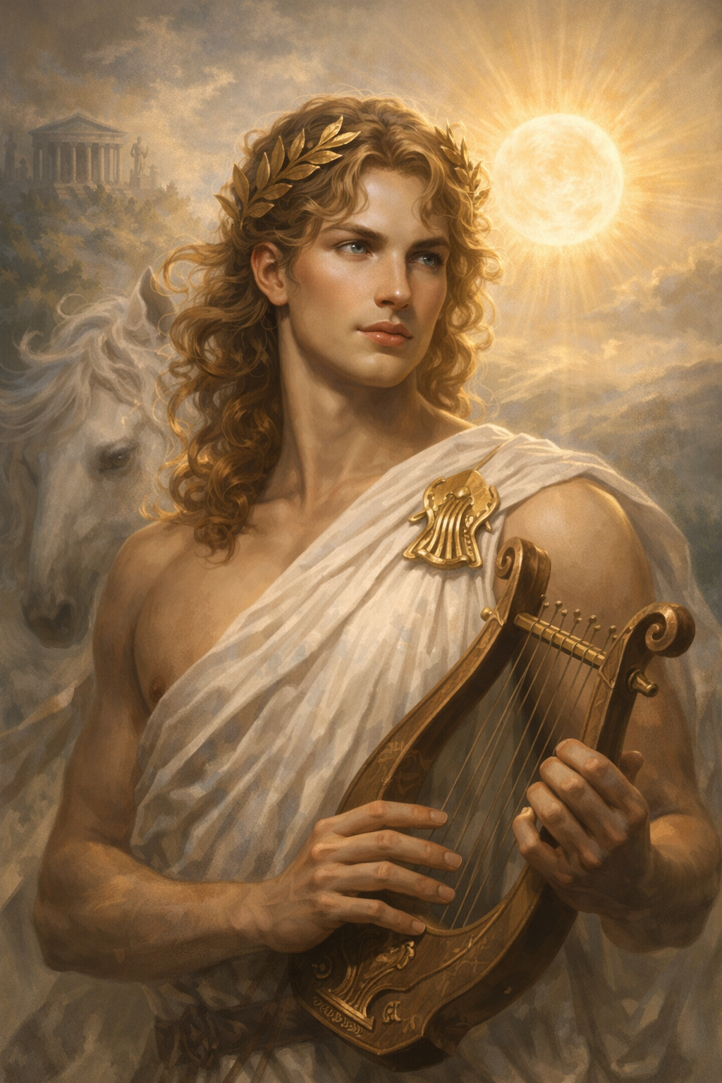 Apolo es el dios del sol, la música, la poesía, la profecía, la medicina y el tiro con arco. Gemelo de Artemisa. Patrón del oráculo de Delfos. Uno de los dioses más venerados.