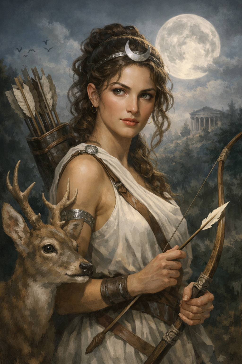 Artemisa es la diosa de la caza, los animales salvajes, la naturaleza y la luna. Hermana gemela de Apolo. Diosa virgen que castiga severamente a quienes atentan contra su pureza.