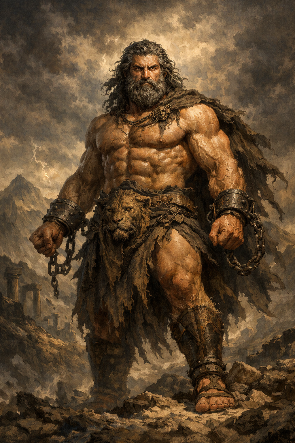Atlas fue condenado por Zeus a sostener la bóveda celeste sobre sus hombros por toda la eternidad como castigo por luchar del lado de los Titanes en la Titanomaquia.