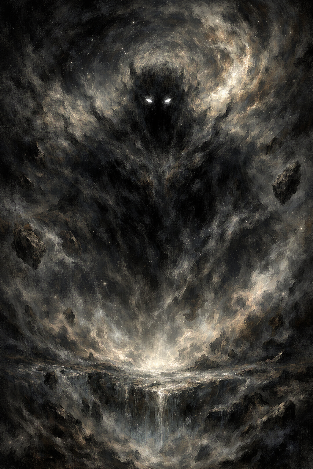Caos es el primer ser que existió, el vacío primordial del que surgió todo lo demás. No es un dios con forma, sino el abismo infinito y oscuro que precedió a la creación. De Caos nacieron Gea (la Tierra), Tártaro (el Abismo), Eros (el Amor), Érebo (la Oscuridad) y Nix (la Noche).