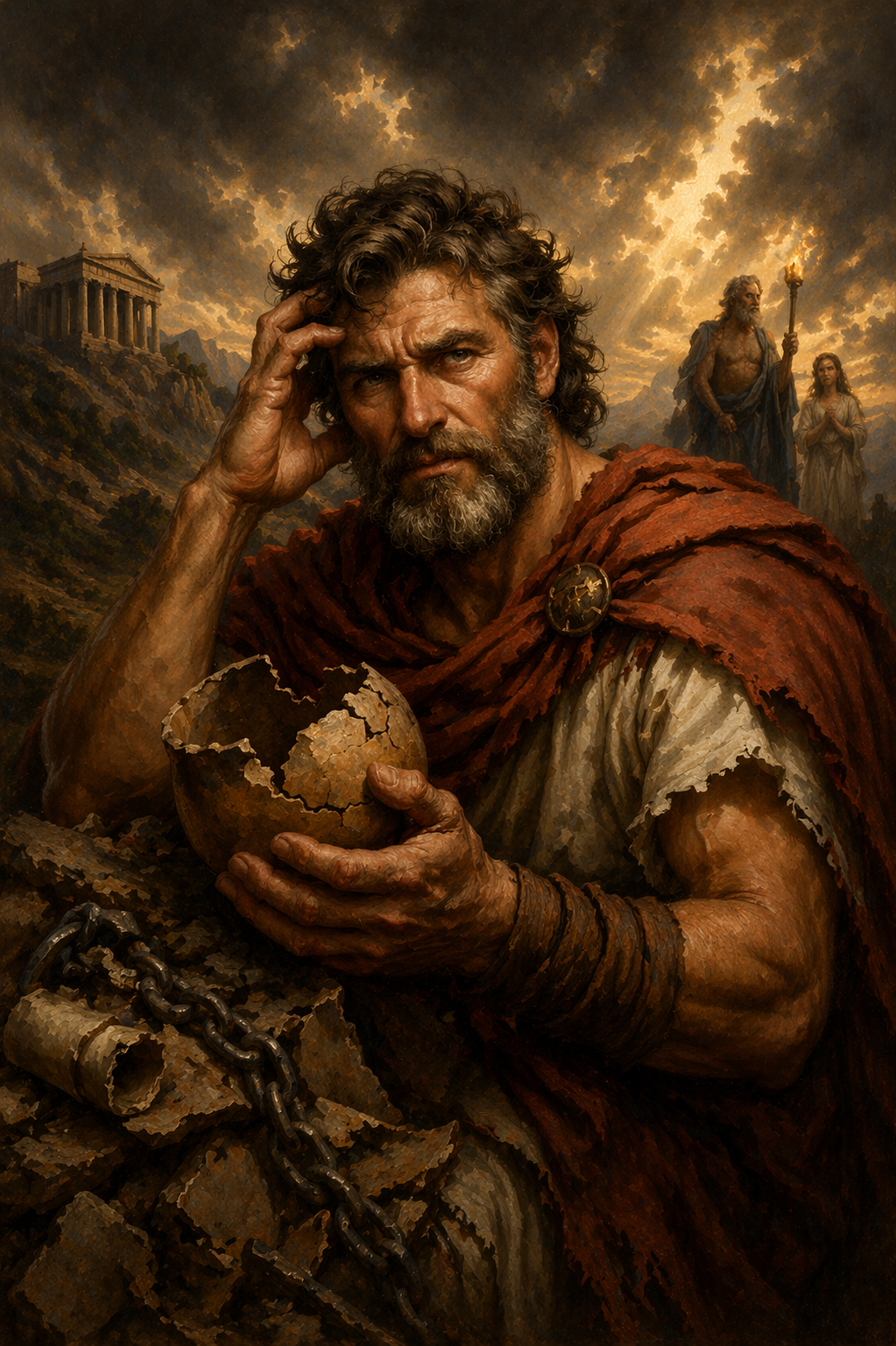 Epimeteo es hermano de Prometeo. Pese a las advertencias de su hermano, aceptó a Pandora como regalo de Zeus, desatando todos los males sobre la humanidad.