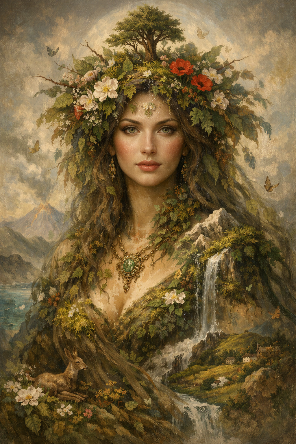 Gea es la personificación de la Tierra y una de las deidades primordiales. Madre de los Titanes, los Cíclopes y los Hecatónquiros con Urano. Conspiró con Cronos para derrocar a Urano cuando este encarcelaba a sus hijos.